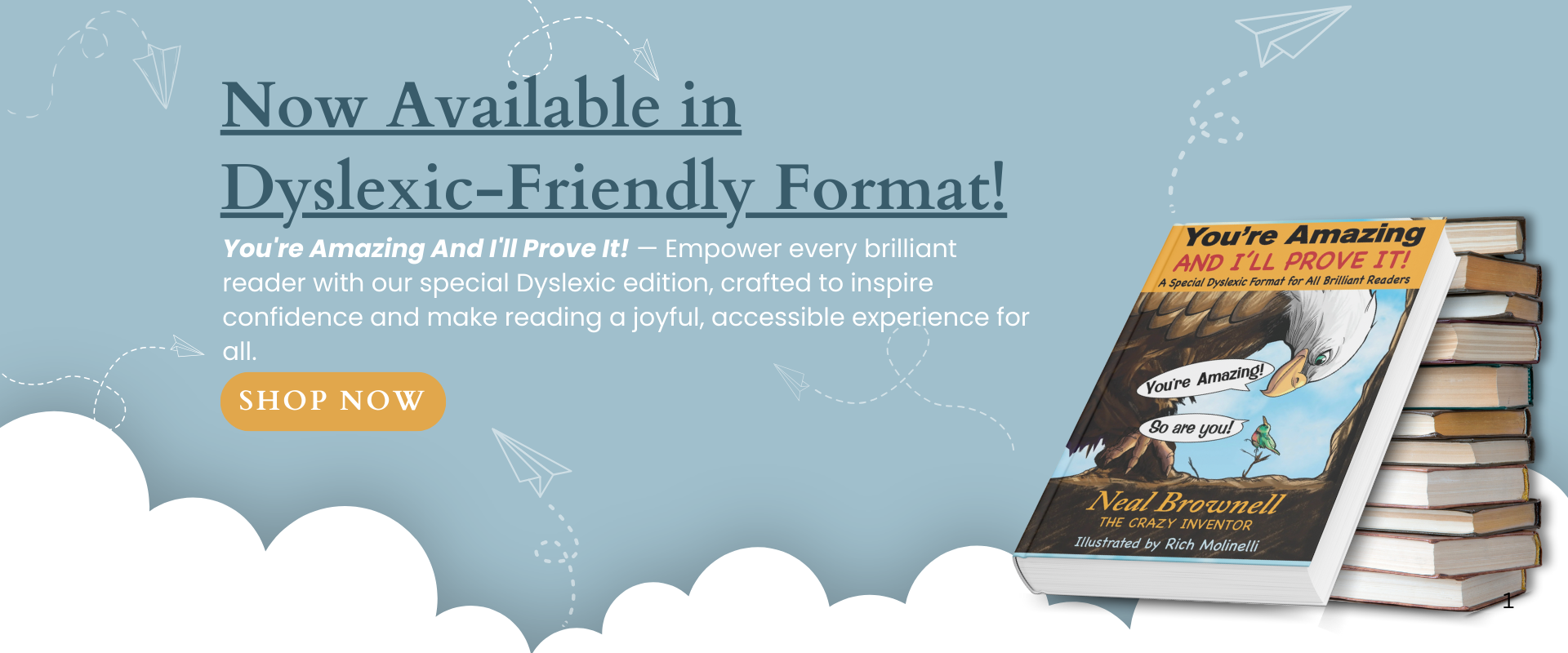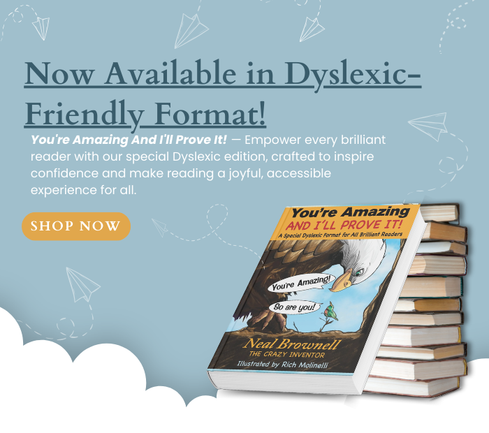 Experience a transformative journey with the Dyslexic-Friendly eBook edition of You’re Amazing And I’ll Prove It! Designed specifically for dyslexic readers, this edition features a dyslexia-friendly format to ensure an engaging and accessible reading experience. Through inspiring stories and practical insights, Neal Brownell, The Crazy Inventor, helps children discover their hidden strengths and embrace their unique qualities. Perfect for young readers who see challenges as obstacles, this empowering eBook offers the gift of self-acceptance and confidence.